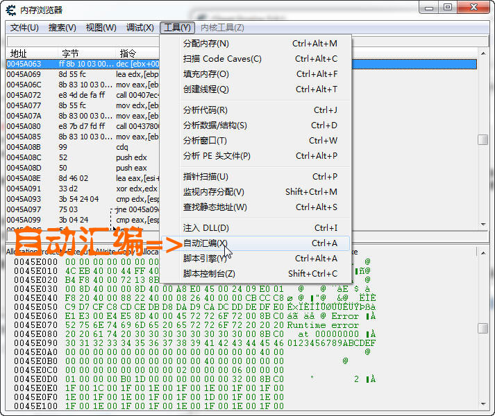 點擊工具,選擇自動匯編