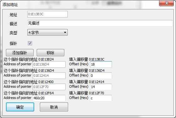 指針是由基址在偏移組成的,所以在教程中我們只要找到4個偏移和1個基址就可以了。