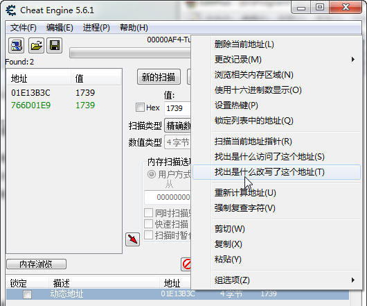CE讓我們下一步找 01da6d48(在你電腦顯示可能不是這個地址,因為它是動態地址),繼續操作: