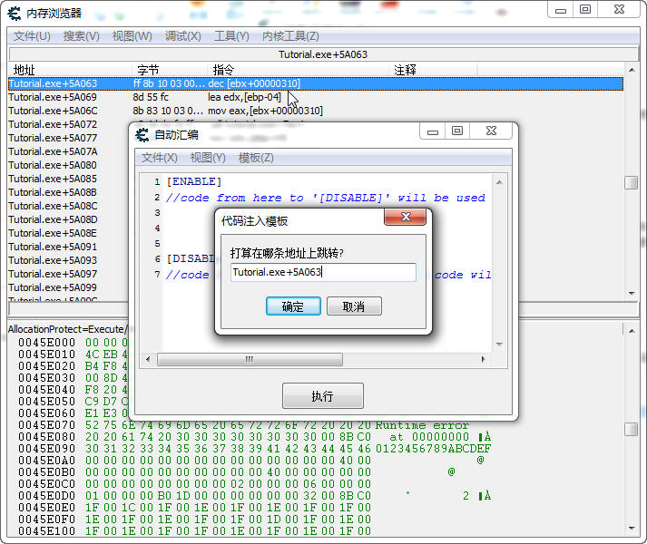 0045A063 變成了 Tutorial.exe+5A063