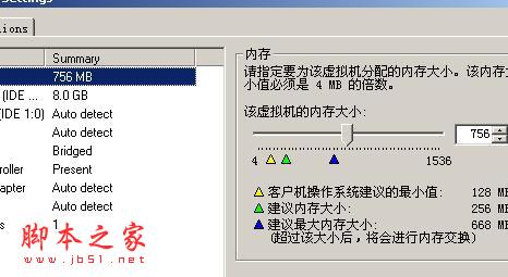 先設置虛擬系統的內存,要看你機子本身的內存是多少。一般在一半的位置就OK了~