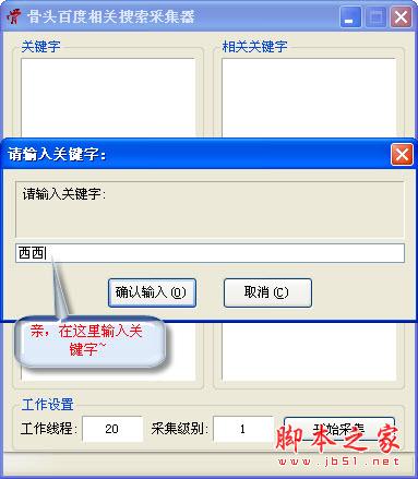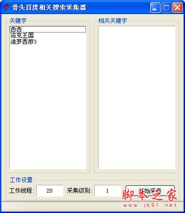 骨頭百度相關搜索采集器可以在輸入您的關鍵字以后,自動去獲取百度的相關搜索,這個軟件也是博客營銷助手的最大幫手,如果您有需要不防試試哦.