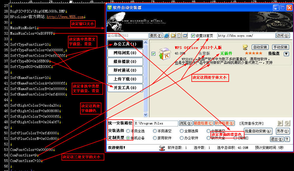 (3)點擊“預覽”按鈕,程序會將當前的配置保存為默認的配置文件名,然后調用軟件自動安裝器,即可查看到預覽的效果