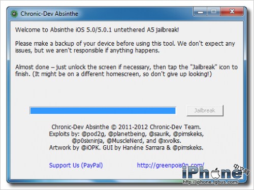 iPhone4S完美越獄,需要使用最新發布的absinthe-win-0.2越獄工具。在升級中,可能會導致基帶升級,所以有鎖機請注意保留基帶,使用自制固件進行升級越獄。