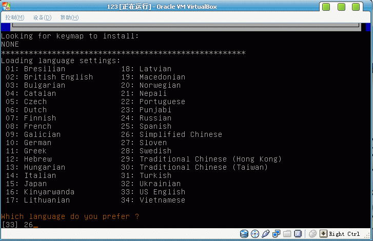 出現(xiàn)以下界面,輸入26,按回車鍵