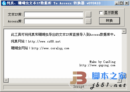 文中所用工具打包下載 QQ IP數(shù)據(jù)庫(kù) 純真版 access(ip雙精度)數(shù)據(jù)庫(kù)制作工具