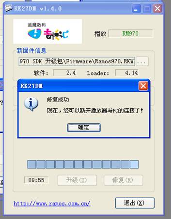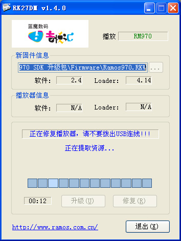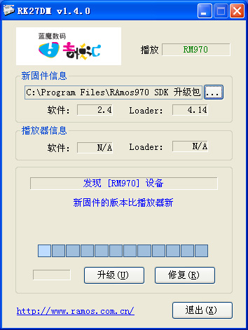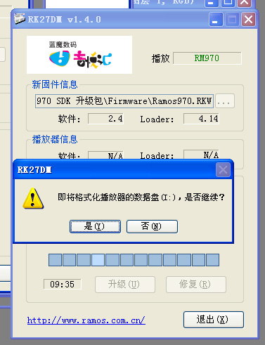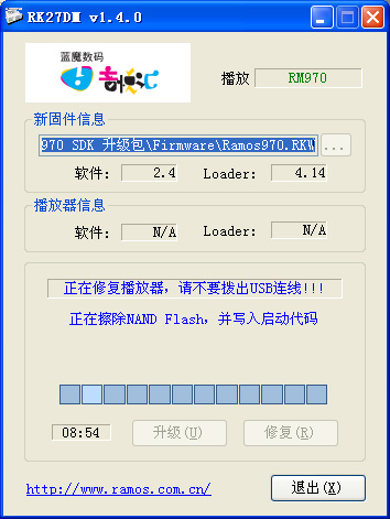 注意!點擊“修復”來修復RM970的引導程序(不是點擊“升級”)