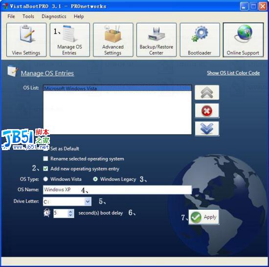 第二步:“Manage OS Entries”選項(xiàng)卡(添加Windows XP)