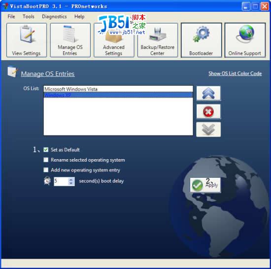 提示2:如果“Apply”按鈕呈灰色不可用狀態(tài),可以先選擇“Uninstall the Vista Bootloader”,然后再切換回去再選擇就可以了。