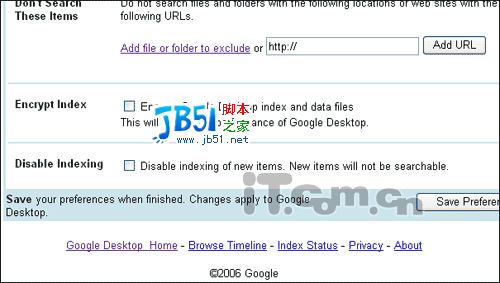 值得一提的是,這次的新版本允許建立密碼索引“Encrypt Index”,勾選“Encrypt Google Desktop index and data files”即可在盡力索引文件時對索引數(shù)據(jù)文件進行加密。