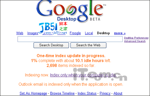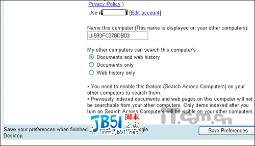 在“Desktop Preferences(偏好設(shè)置)”中,點擊“Gmail and Search Across Computers”鏈接,在這里可以設(shè)置是否搜索GMAIL和遠(yuǎn)程桌面搜索。