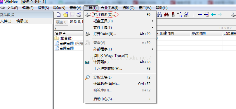 打開winhex工具,打開磁盤,選擇要恢復的盤磁盤