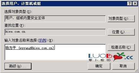 單擊添加,就出現查找用戶名或安全組的窗口了。