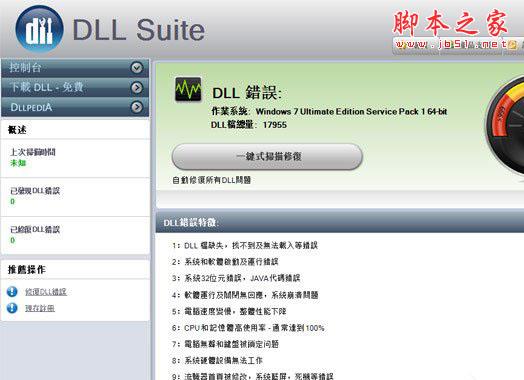 DLL Suite以修復(fù)DLL,EXE, SYS,DRV錯(cuò)誤為主要特色,兼具磁盤清理,注冊(cè)表清理,系統(tǒng)垃圾清理,軟件卸載,系統(tǒng)更新等功能。通過修復(fù)系統(tǒng)錯(cuò)誤,清理系統(tǒng)垃圾和保護(hù)系統(tǒng)安全從而增強(qiáng)系統(tǒng)性能,優(yōu)化系統(tǒng)效率。