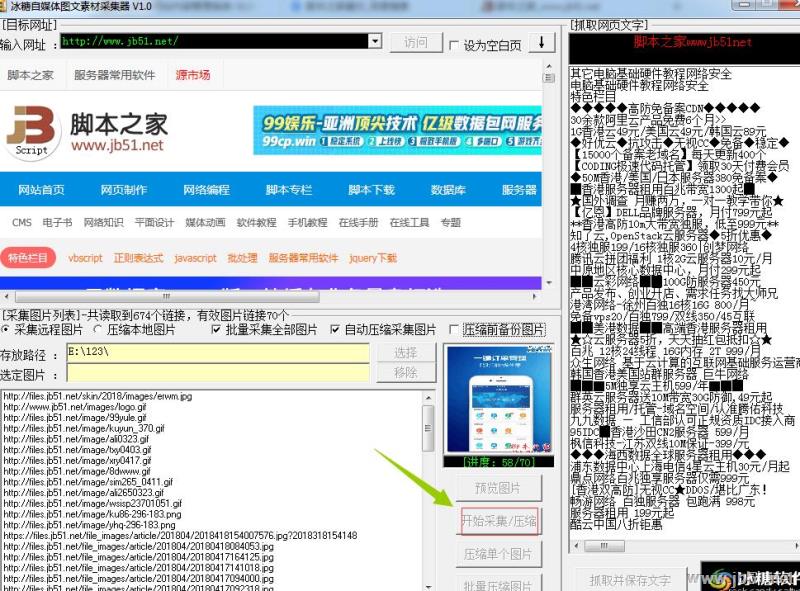 需要采集圖片的,這時候點擊“開始采集/壓縮”按鈕即可自動批量采集,圖片自動保存到你指定的“存放路徑”文件夾下面。當然你也可以選擇只下載單個文件,并且可以點擊“預覽圖片”按鈕預覽待采集的圖片文件。為了節約空間,在批量性下載圖片的同時,你還可以在“自動壓縮采集圖片”選項打上勾,那么下載的圖片將會被自動壓縮(當然圖片質量會同步受損),如果壓縮之前先備份原圖片文件,你還可以在“壓縮前備份圖片”選項打上勾即可。