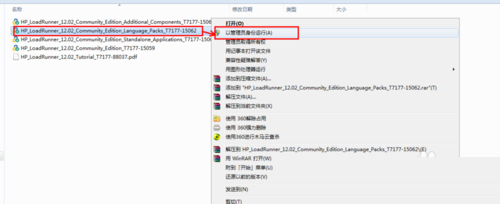 10.是不是英文界面用起來(lái)不是很方面。那么接下來(lái)我們將安裝Loadrunner中文包。右鍵點(diǎn)擊“HP_LoadRunner_12.02_Community_Edition_Language_Packs_T7177-15062.exe”安裝包,選擇【以管理員身份運(yùn)行】;