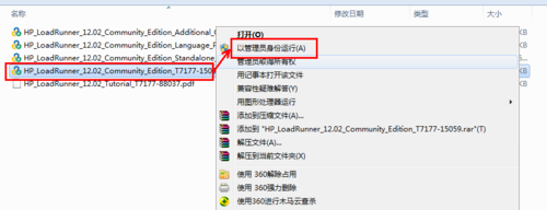 2.右鍵點(diǎn)擊HP_LoadRunner_12.02_Community_Edition_Standalone_Applications_T7177-15061.exe 安裝程序,打開(kāi)窗口中選擇【以管理員身份運(yùn)行】(若在Loadrunner安裝完后直接點(diǎn)擊運(yùn)行有問(wèn)題的話,可以采用此方式使用管理員身份嘗試運(yùn)行。曾經(jīng)運(yùn)行時(shí)有一些問(wèn)題,采用管理員身份運(yùn)行后問(wèn)題就沒(méi)了。所以建議采用此方式。);