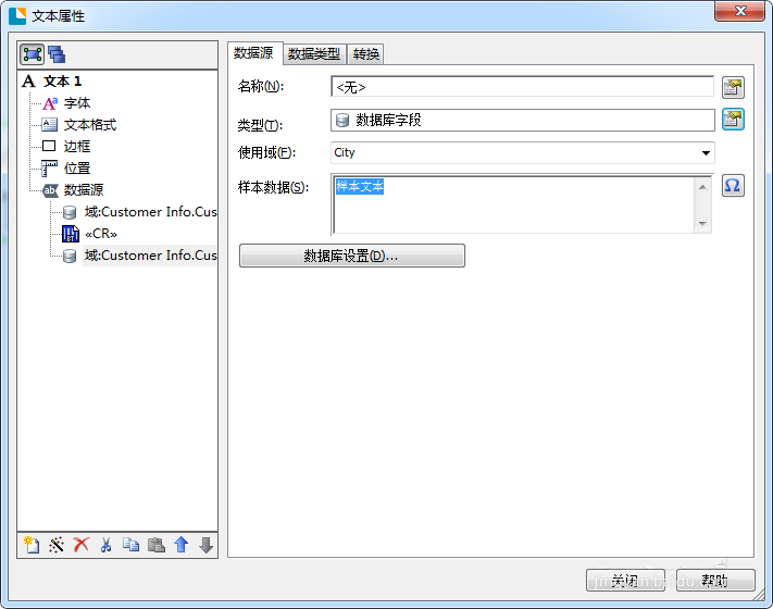 3、再單擊左下角的“新建數據源向導”圖標,選擇“數據庫字段”作為數據源類型,選擇另一個“使用域”;
