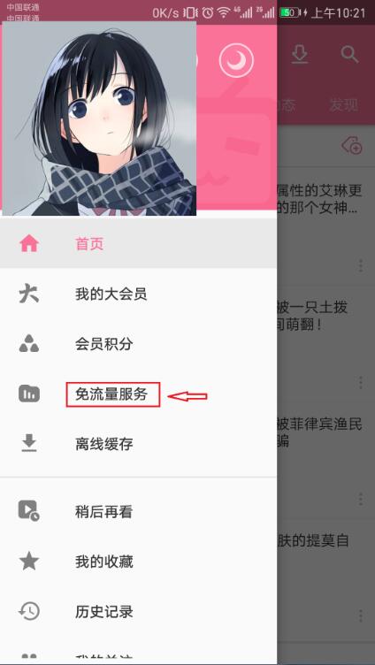 點(diǎn)擊免流量服務(wù)即可進(jìn)入申請界面