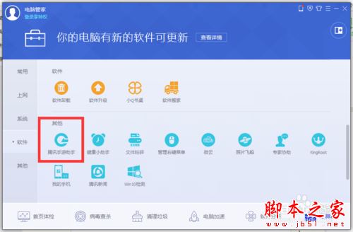 先在電腦上下載并打開電腦管家,然后選擇工具箱功能