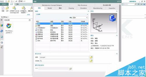 2、點(diǎn)擊新建,新建一個(gè)模型文件,命名為vvvv.prt,必須要英文名稱(chēng)。