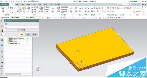 8、輸入長(zhǎng)度深度寬度參數(shù),輸入名稱(chēng),效果圖如下圖所示,完成矩形槽的建立。