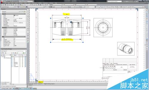 3、選擇2D轉(zhuǎn)換類型中的layout,轉(zhuǎn)換完畢后打開(kāi),可以發(fā)現(xiàn),此類型轉(zhuǎn)換是將UG中工程圖和模型綁定轉(zhuǎn)換,即工程圖轉(zhuǎn)換到CAD的layout中,CAD的model界面中則轉(zhuǎn)換了主視圖和建模環(huán)境下的軸側(cè)視圖,如圖所示。UG的視圖圖框完全轉(zhuǎn)換成CAD視圖圖框,對(duì)視圖進(jìn)行標(biāo)注,可以發(fā)現(xiàn)視圖比例與UG中的保持一致,都為實(shí)際尺寸。