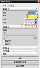 2、在彈出的“編輯對象顯示”對話框里點擊顏色,如圖所示。彈出編輯對象顯示的快捷鍵為:”Ctrl”+”J”