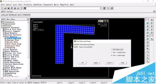 5、mian menu--general postproc--polt result--deformed選擇數(shù)據(jù)類型為ALL item,點(diǎn)擊 ... 的圖標(biāo),選擇該模型的rst文件,點(diǎn)擊OK