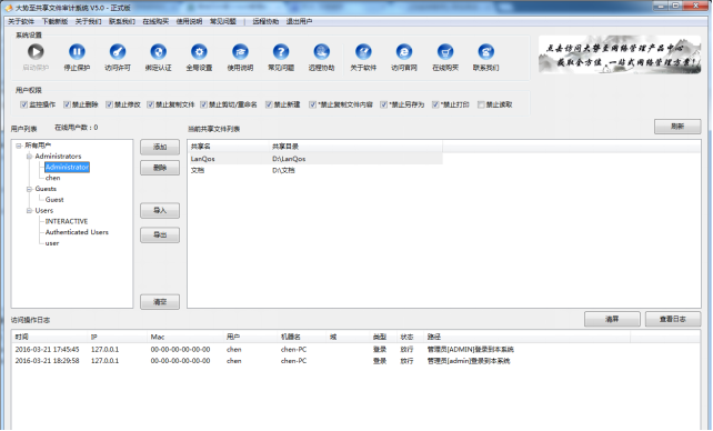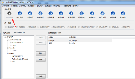 目前,很多單位局域網都有自己的文件服務器,經常共享一些文件供局域網用戶訪問,如何保護服務器共享文件的安全呢,一方面可以借助于操作系統的文件訪問權限設置,另一方面,也可以借助于一些專門的服務器共享文件管理軟件來實現。大勢至共享文件審計系統就是這樣一款軟件。