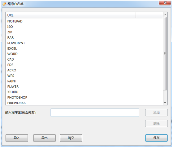 此項功能主要用來設置許可客戶端訪問共享文件時所使用的工具和應用。例如,你可以允許用戶打開word共享文件,但禁止用戶通過QQ將共享文件發送出去。如下圖所示: