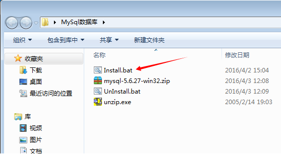 首先,請安裝MySql數據庫,你可以用我們自帶的數據庫(下載地址:http://pan.baidu.com/s/1c27DBby),直接點擊“MySql數據庫”中的“install.bat”即可,如下圖所示: