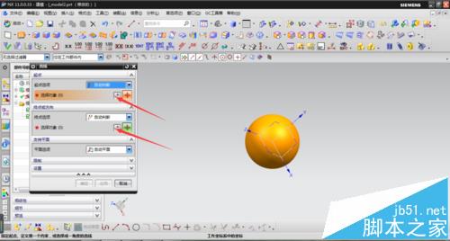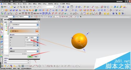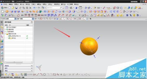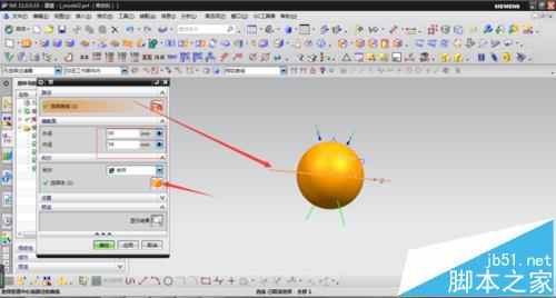 1、熟練的操作是在不斷的練習中產生的,多數使用NX的人都有自己的模板。可以直接使用快捷鍵調用特征命令,或者選擇插入/設計特征/球,指定球心位置和球體直徑,創建一個球體。