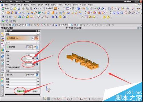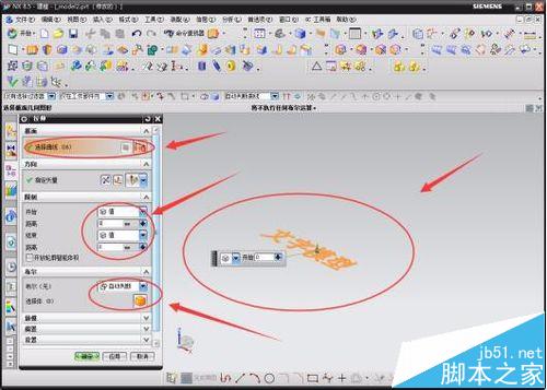 6 、選中文本“文字模型”并點擊一下確認選中,在模型建立的主頁面的左上角出找到“拉伸”的快捷圖標按鈕并點擊;會在左邊彈出一個編輯的對話框,在選擇曲線中會顯示也選好的曲線數,開始數據和結束數據都為0,布爾為“自動判斷”;在數據對話框中的開始中輸入0,結束中輸入5,輸入后你就會發現出現了3D的文字模型,點擊“確定”,得到3D的文字模型。
