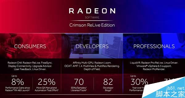AMD顯卡驅動重新設計并改名為Radeon Software之后,已經累計發(fā)布了29個版本,包括八個WHQL認證正式版,支持和優(yōu)化了28個熱門游戲大作,AMD官網下載量超過8500萬,用戶評價超過4.5星。