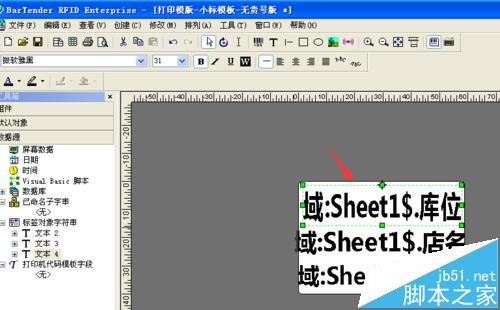 2、放在標(biāo)簽?zāi)0?/strong>中的字段,是可以設(shè)置屬性的,一般是文本文檔,批量打印需要設(shè)置文本的屬性為數(shù)據(jù)庫的字段。