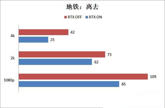 地鐵離去:在開啟或關閉RTX的情況下,在2K和1080p分辨率下都可以流暢運行。而在4K分辨率下開啟RTX后已經比較吃力。