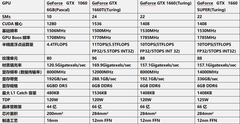 GTX 1660 Super使用的還是TU116-300核心,同樣的1408組CUDA核心,基礎頻率和Boost頻率也是和GTX 1660一樣。顯存和之前的小道消息一樣,升級倒了DDR6,這么一來顯存的帶寬提高到了336GB/s,甚至超過了GTX 1660Ti的288GB/s。