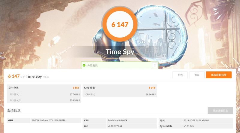 3DMARK跑分的情況也能看出實際的性能提升,TimeSpy項目得分6147分,相比GTX 1660高出了不少。FireStrike項目中也拿到了14773分,高出了GTX 1660大約2000分。這兩個項目的得分都和GTX 1660Ti接近,可謂花小錢辦大事。