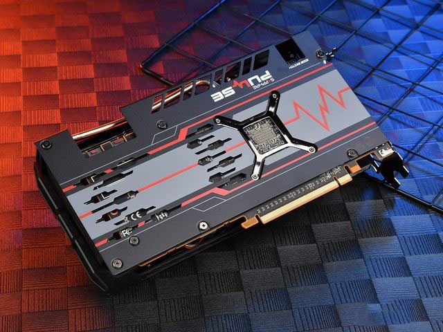 顯卡背面較公版增加了背板,依舊采用藍寶石的傳統設計,非常漂亮,在輔助散熱的同時增強了顯卡整體強度。