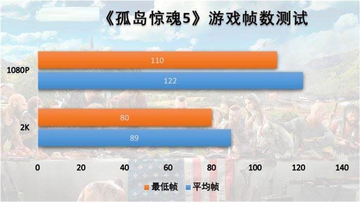接下來看一下遠哭5,分別在1080P和2K分辨率下運行游戲基準測試,得到以下結果: