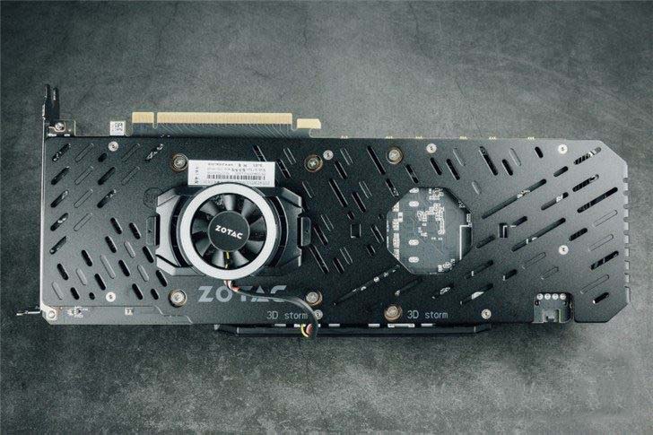 顯卡正面十分簡潔,三個規格相同的風扇,正面擋板也只有部分色塊與鏤空設計。