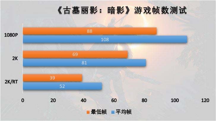 1080P分辨錄下,平均幀數為108幀,最低幀數為88幀;2K分辨率下,平均幀數為81幀,最低幀數也可達到69幀,但開啟光追后,平均幀數為52幀,最低幀數來到39幀。