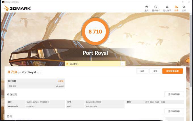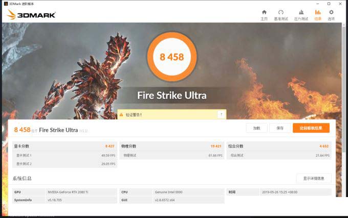 在3DMARK顯卡基準跑分項目中,索泰 RTX 2080 Ti PGF OC14的Firestrike和Firestrike extreme項目相當出彩,總分分別為25973和16085,其中圖形得分分別為36012和17335,搭配高刷新率的電競顯示器,在大多數游戲中會擁有完美流暢的視覺體驗;而在4K分辨率下的Firestrike Ultra中,得分僅為8458,想4K下爽各種大作大概要等下兩個世代了。