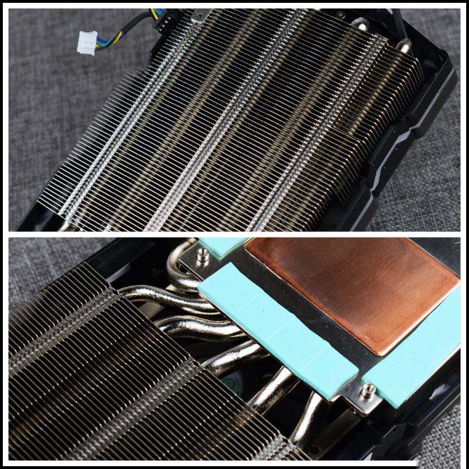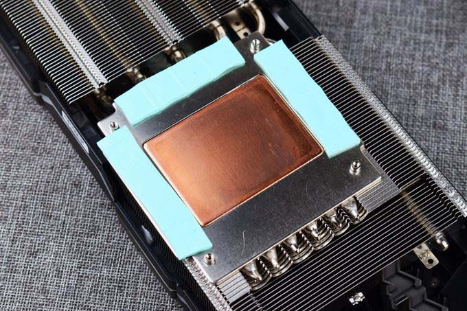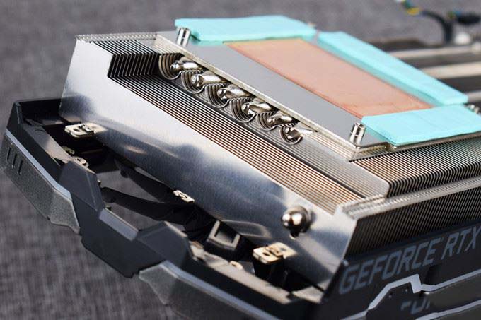 索泰 RTX 2080 Ti PGF OC14的散熱部分也做了堆料,4條8mm熱管+2條6mm熱管+焊接銅底保證強悍的導熱性能,熱管和散熱片本身做了防氧化的鍍鎳處理,再加上超厚的是散熱片和整齊的扣fin工藝,用來豪華來形容也絕不為過。