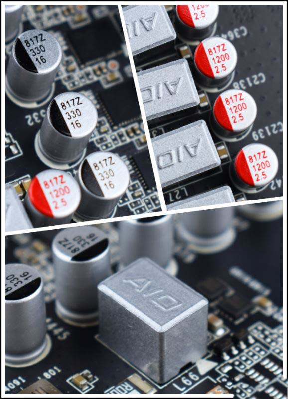 作為以堆料而著稱的PGF系列,這次OC14也不遺余力,16相豪華供電中除了使用全固態電容設計外,電感來自索泰定制的AIO電感,無論從數量上還是規格上都比公版占優,可有效減少電感嘯叫的問題。