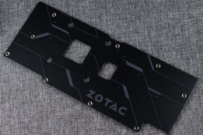 作為高端非公版顯卡標配,除了厚重的散熱器外,當然還有照顧元件發熱的散熱板,散熱板設計可以解決元件負載時的發熱問題,同時也可以避免PCB變形,而索泰 RTX 2080 Ti PGF OC14在散熱板上進行了改良,同時在高熱mos部分增加了小幅度的凸起,從而增加散熱面積。