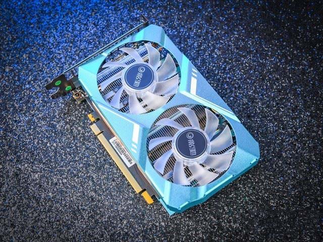如果讓我用幾個字來形容這款顯卡,那么第一個映在我腦海里的就是:清亮。影馳RTX 2060 Mini顯卡在外觀上的配色非常大膽,使用了冰晶藍的配色,這是一種類似藍色夏威夷雞尾酒的淺藍色,冷色系帶給人的感覺就是清爽。