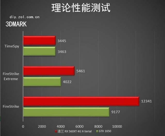 從上面這張表我們能看到,在DX11環(huán)境下的FS、FSE兩個指標中,迪蘭RX 560XT 4G X-Serial明顯領(lǐng)先于GTX 1650,領(lǐng)先幅度分別是34%和35%,不過3DMARK對DX11環(huán)境下的圖靈顯卡支持并不是很好,所以這個數(shù)看看就好,而在DX12環(huán)境下二者表現(xiàn)相當。至于具體差距還是要看游戲。