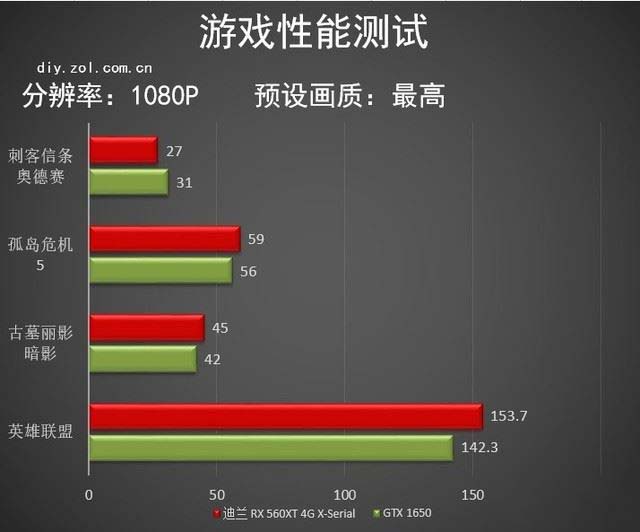 游戲性能上的反應要更真實一些,除了刺客細條奧德賽,另外幾款游戲迪蘭RX 560XT 4G X-Serial都有著或多或少的領(lǐng)先,3A大作上降低一點畫質(zhì)基本上都可以60幀流暢運行(奧德賽就算了),在一些配置要求較低的電競游戲上,560XT的表現(xiàn)也更好。